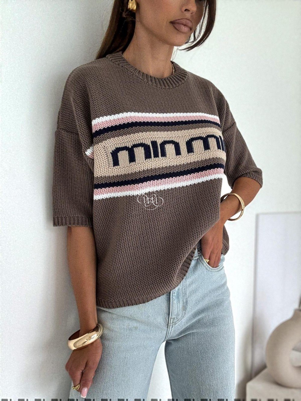 Min min“ moka megztinis rožiniais dryžiais